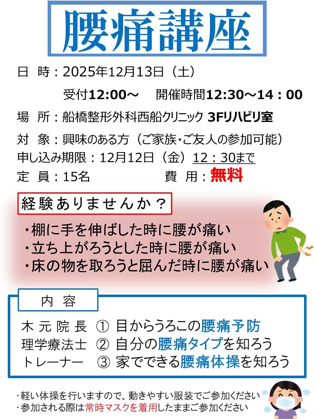・体調確認の際に、リスクが伴うと考えられた場合には、聴講のみとさせていただく場合があります。